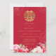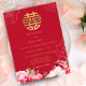 Adorned with intricately designed Chinese peonies in vibrant shades of red, symbolising love, prosperity, and happiness in Chinese culture, this invitation captures the essence of joy and celebration that accompanies weddings.