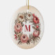 Peonies Floral Wreath with Personalised Monogram Ceramic Ornament