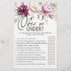 Over or Under bridal shower game. Soft watercolor Pink Burgundy Peonies Floral. Matching items to complete your event collection are available in our Zazzle store!