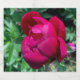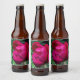 A beer bottle label featuring a photo of a peony.