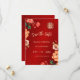 This traditional Chinese wedding invitation features painted peonies in red, yellow and neutral tones on a shimmering red floral background. Save the date text in an elegant handwritten script. Matching Chinese wedding products available.