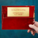 This Chinese wedding envelope features colourful peony flowers and a gold double happiness symbol on a shimmering red background.