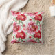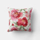 Red and pink peonies decorate this throw pillow. It's reversible to a larger peonies pattern. Available in different sizes and materials.