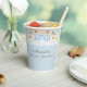 Elevate your Peony Blue Hydrangea Bridal Shower with these beautifully designed personalised paper cups, perfect for adding a touch of elegance to your celebration. Featuring a romantic arrangement of soft blue and white hydrangeas paired with dusty pink and white peonies, these cups exude feminine charm and sophistication. The delicate floral design is set against an elegant, dusty blue background, complete with intricate white lace detailing for a timeless, romantic feel. Inspired by the iconic decor and fashion of Nancy Meyers’ films, these floral bridal shower paper cups are ideal for creating a warm and inviting atmosphere. Whether you're serving refreshing beverages or adding a decorative touch to your table settings, these cups seamlessly blend practicality with style, making them an essential addition to your celebration. Perfect for brides who adore romantic, feminine designs and timeless elegance.