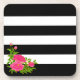 Peony flowers on black & white striped coaster