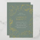 Perfect for sping or summer garden bridal showers, these elegant floral peony bridal shower invitations feature a border of gold foil peony flower outline illustrations, with your event details in classic lettering on a dusty sage green background. Personalise these classic elegant bridal shower invitations with the bride's name, shower date and time, venue and address, RSVP, and registry information.