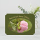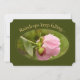 Birthday card inspired by a photo of a very wet peony flower. The head of the flower fills up most of the space. The colour is a light pink and the petals are covered with the glittering raindrops. The few leaves and the background are brightly green, a small ant is climbing up one of those leaves. The photo has a fresh, springlike look.