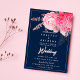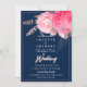Peony pink rose gold navy blue floral Wedding Invitation