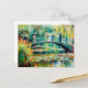 People on garden bridge with water lilies holiday postcard