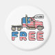 People's Freedom Convoy shows a patriotic truck in USA colors, honking as she goes, with the word "FREE" below in Stars and Stripes. Celebrating the People's Freedom Convoy and making a statement.