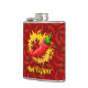 The flask itself is fine. It’s a cheap flask, obviously bought in bulk, however am prepared to overlook that. Given that it is a personalized item, I would have liked to have seen gift boxing instead of the generic packaging. Terrible printing, and/or quality. It’s a cheap, tacky vinyl. It is not cut straight and is also applied in a way that it is overhanging the bottom, causing the glue to catch on items and it will eventually roll and tear, damaging the wrap.