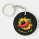 Red chilli pepper with circle of flame. Custom background colour. Custom text on both sides.