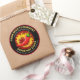 Red chili pepper with circle of flame. Red seamless pattern background. Four text fields to customize.