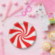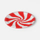 Peppermint Candy cane pattern paper plate.There are many other legends and beliefs surrounding the humble candy cane. Many of them depict the candy cane as a secret symbol for Christianity used during the times when Christian were living under more oppressive circumstances. It was said that the cane was shaped like a "J" for Jesus. The red-and-white stripes represented Christ's blood and purity. The three red stripes symbolised the Holy Trinity. A fun idea for Christmas.Add text or image to customise and personalise. Also,take a look at our "Colour Customisable Candy Cane" paper plate or our "Chocolate doghnut" paper plate.
