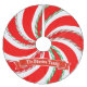 A giant peppermint swirl candy is decorated with yet more peppermint striping and your name.