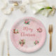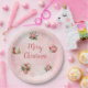 Peppermint Christmas Tea Party Pink Snowflake Paper Plate