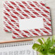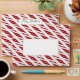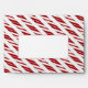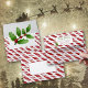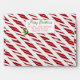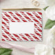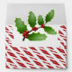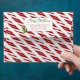 Red and white peppermint sticks decorated envelope for the holiday season. On the front, a white rectangle is provided for addressing. On the flap, Include “Merry Christmas” or your choice of greeting in green, with name and return address in red. A little sprig of holly decorates the address area and another to match is inside the flap.