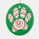 Peppermint Swirl Dog Paw In Red Green White Ceramic Ornament