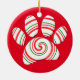 Custom decorative ornaments with peppermint swirl inspired shapes in red, green and white.