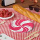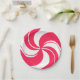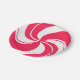 A bright red and white peppermint swirl design on a paper plate. Perfect for parties with lots of candy.