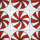 Fabric features rows of red-and-white peppermint "starlight" mint candies on a white background. Perfect for Christmas crafting! Created from an original marker illustration.