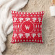Fun red and white pizza lover Christmas holidays cushion with an ugly sweater pattern of pepperoni pizza slices and snowflakes. There's a monogram circle on the front to add your own initial