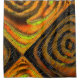 Imagem com tons amarelos e marrom submetida ao efeito 'mosaico pequeno' e alterada de forma que parte deles se cruzam, e recebeu um efeito que se assemelha à sombra e em outra parte da imagem foram adicionados pequenos detalhes que se assemelham a uma textura de fundo semelhante a uma placa metálica amassada ou martelada.