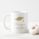 Per aspera ad astra Latin Quote Golden Script Graduation mug. Popular Latin quote meaning Through hardships to the stars is great for a graduate. Trendy script and golden graduation cap. Great gift for a graduate of high school, college or university. Perfect gift from teacher to the students.