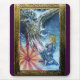 The quest for the Holy Grail (Saint Graal ) makes up an important segment of the legends of King Arthur .Colourful and vibrant contemporary oil painting ,miniature on wooden panel with golden foil in brignt blue,red,white,brown,gold yellow colours, 2010 by Alessandro Lumini . This cool and artistic design is also a beautiful gift for Easter and Christmas Holidays