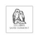 Perched Barn Owls Ex Libris Book rubber stamp. Celebrate your love of books and animals with this personalised library stamp featuring loveable barn owls. A small detail that makes every book feel special. Perfect gift for librarians, teachers and book lovers.