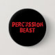 Cool Percussion Beast button to share your joy of Percussion playing with the public at large. This one features red lettering on an ebony background.