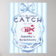 Choose this unique hand-drawn She's the Perfect Catch Beach Preppy Fishing Bachelorette Welcome or decorative sign template to celebrate your Bach party with your girls' squad. On the reverse, you can add a photo if you like. Personalise the design with your details, and order your custom bachelorette invitations and party supplies.