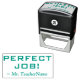 This motivating rubber stamp design features the message "PERFECT JOB!" and a customised educator name. It could be used by a teacher or educator when marking assignments, to acknowledge that a student has done well.