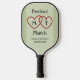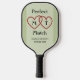 "Perfect Match" monogram pickleball paddle with a great wedding theme. A fun way to celebrate your wedding. Add your desired monogram, name, initials, phrase, and date to the pickleball paddle. Modern design with sage green colours with red hearts. Use the template to create your own monogram pickleball paddle.