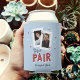 Perfect for poker lovers or casino night engagement parties, rehearsal dinners, couples showers or weddings, our casino themed personalised can coolers feature a pair of playing cards with the couple's photos and initials, and "the perfect pair" in retro Vegas style lettering.. Add the couple's names beneath.