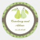 Modern and eye catching bridal shower favour sticker. Great for an event celebrating both the bride and groom. Features two pears overlapping a bit in transparent colours playing upon the theme “Perfect Pair”. A border and pattern background complete the appealing look of this sticker. Ideal for a modern couple celebrating love and the beginning of a new life together. Use it to seal envelopes or party favours.