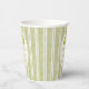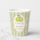The perfect pair pear Sage green stripes retro elegant bridal shower monogrammed paper cups, retro bridal shower personalized paper cups, fall bridal shower personalized table decor, earthy stripped bridal shower cups, pear bridal shower, yellow bridal shower paper cups, grand millennial bridal shower personalized party supplies printed paper cups, coquette bridal shower personalized custom paper cups the perfect pear bridal shower printed paper cups