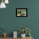 A beautiful capture of this posing pigeon with a bright green natural background behind him. A black border accents the poster.