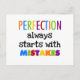 Inspirational message with a multicolor text design reads "Perfection always starts with mistakes", a great design for teachers, parents, educational professionals in an attempt to show students that making mistakes is okay!