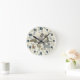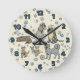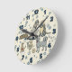 This numbered wall clock has perfectly cute dogs with plaid coats. The cream colored background is covered in light blue paw prints. Coordinating blue numbers mark each hour.