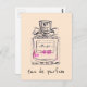 A fashion illustration from an original artwork by artist Sacha Grossel of a pink perfume vintage perfume bottle. This watercolour illustration of a luxury brand perfume is in pop art style and the background colour is customisable. Perfume French quote of Eau de Parfum for a French fashion theme.