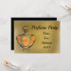 A party invitation for a perfume party plan party. This fully customisable invitation features a luxury gold background with original art perfume bottle fashion illustration with customisable text. Gold and black theme.
