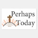 This design says "Perhaps Today" in large letters. Underneath a hill with a cross on top of it, in smaller letters, the design says "Jesus is coming back soon".