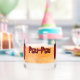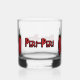 A red peri-peri chilli pepper, also known as piri-piri or pili-pili, is decorated with patterns inspired by the traditional sarong capulana from Mozambique and sits on a yellow background with a smaller version of the same pattern and a script label in the corner. This spicy, red pepper was originally cultivated in Mozambique after pepper plants were brought by Portuguese explorers. This glassware is also available in can glass and stemless wineglass styles.