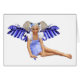 This sweet little fae is dressed in a cute, blue gingham pinafore dress, has blonde pigtails and lovely big blue wings made of flower petals.