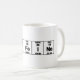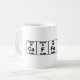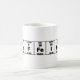 Coffee mug with "caffeine" spelled out in elements printed on.