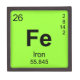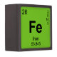 From the Periodic Table of Elements, the atomic number, symbol, name and atomic mass for the chemical element Iron. The background colour can be changed when customising.