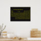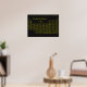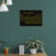 This poster features a yellow periodic table on a black background. A great addition to a lab or any room in the house.