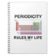 Chemistry humor comes alive on this notebook featuring the Periodic Table of Elements along with the saying "Periodicity Rules My Life". If you like to punctual, consistent, and regular -- as opposed to irregular -- you'll enjoy this wry geek attitude notebook that will make people do a double-take at exactly what you are referring to! No need to be a chemistry major or chemistry teacher to enjoy a touch of Mendeleev humor!