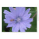 This note card features a periwinkle blue flower and a bee gathering nectar.